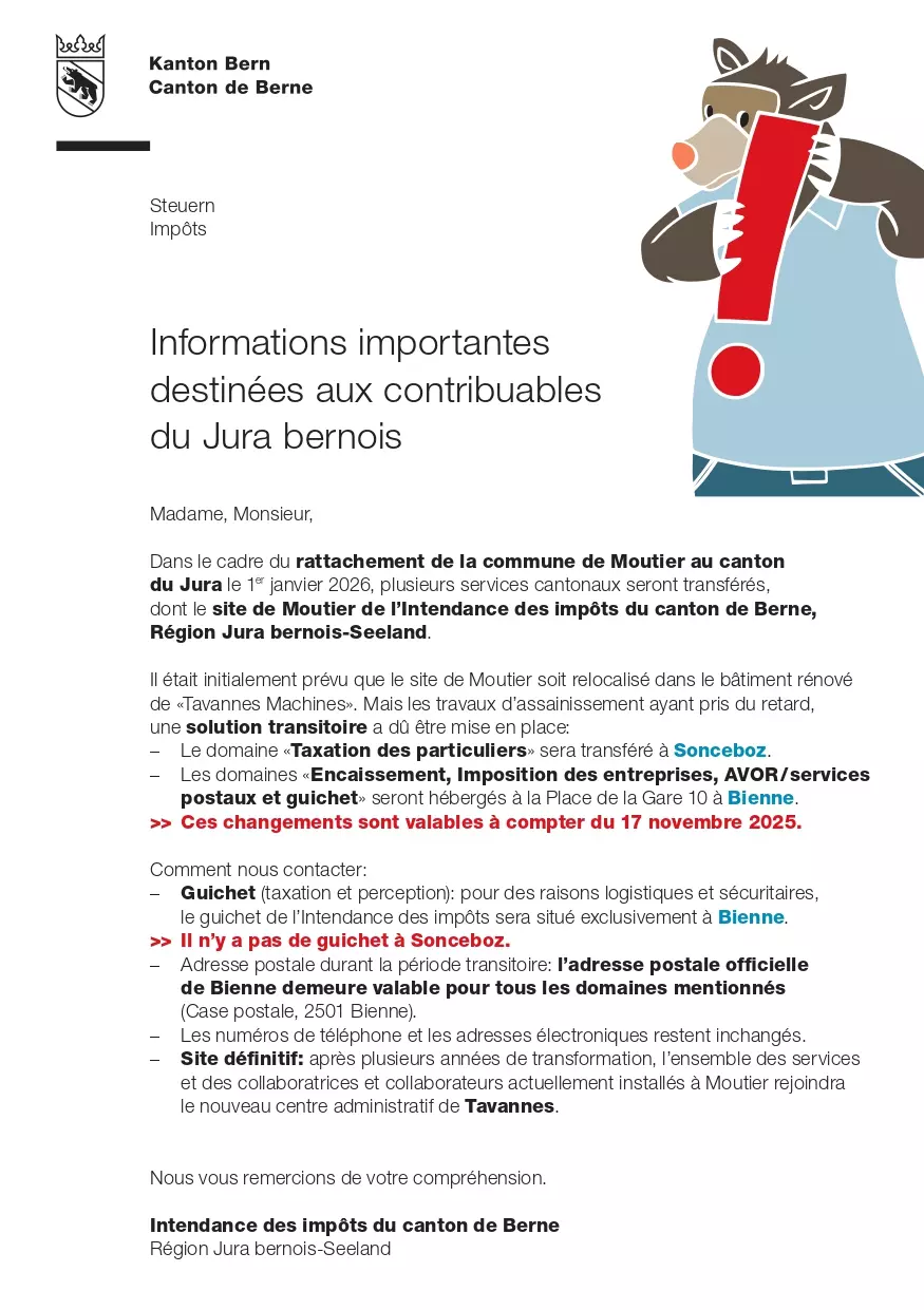 Informations importantes pour les contribuables