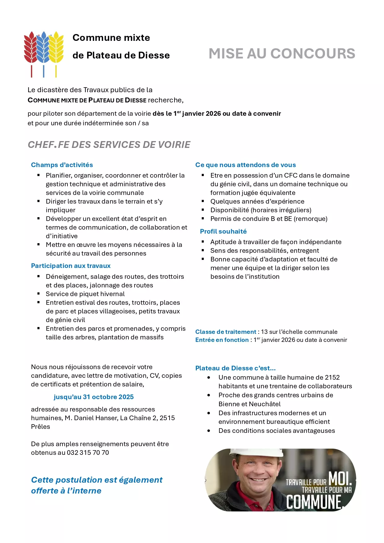 Cahier des charges - chef.fe de la voirie