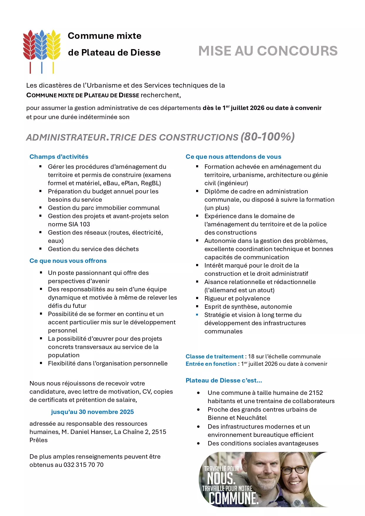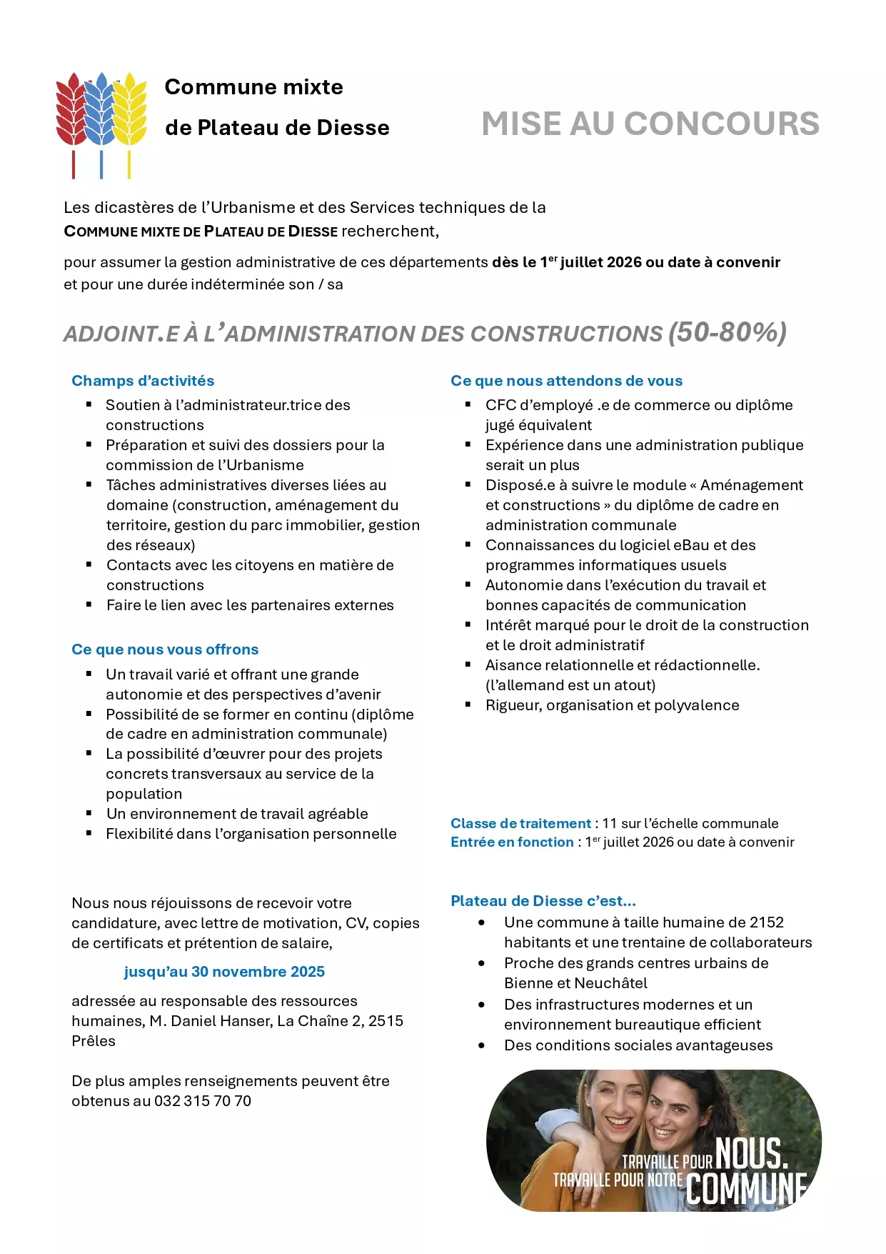 Nous avons plusieurs postes à pourvoir :